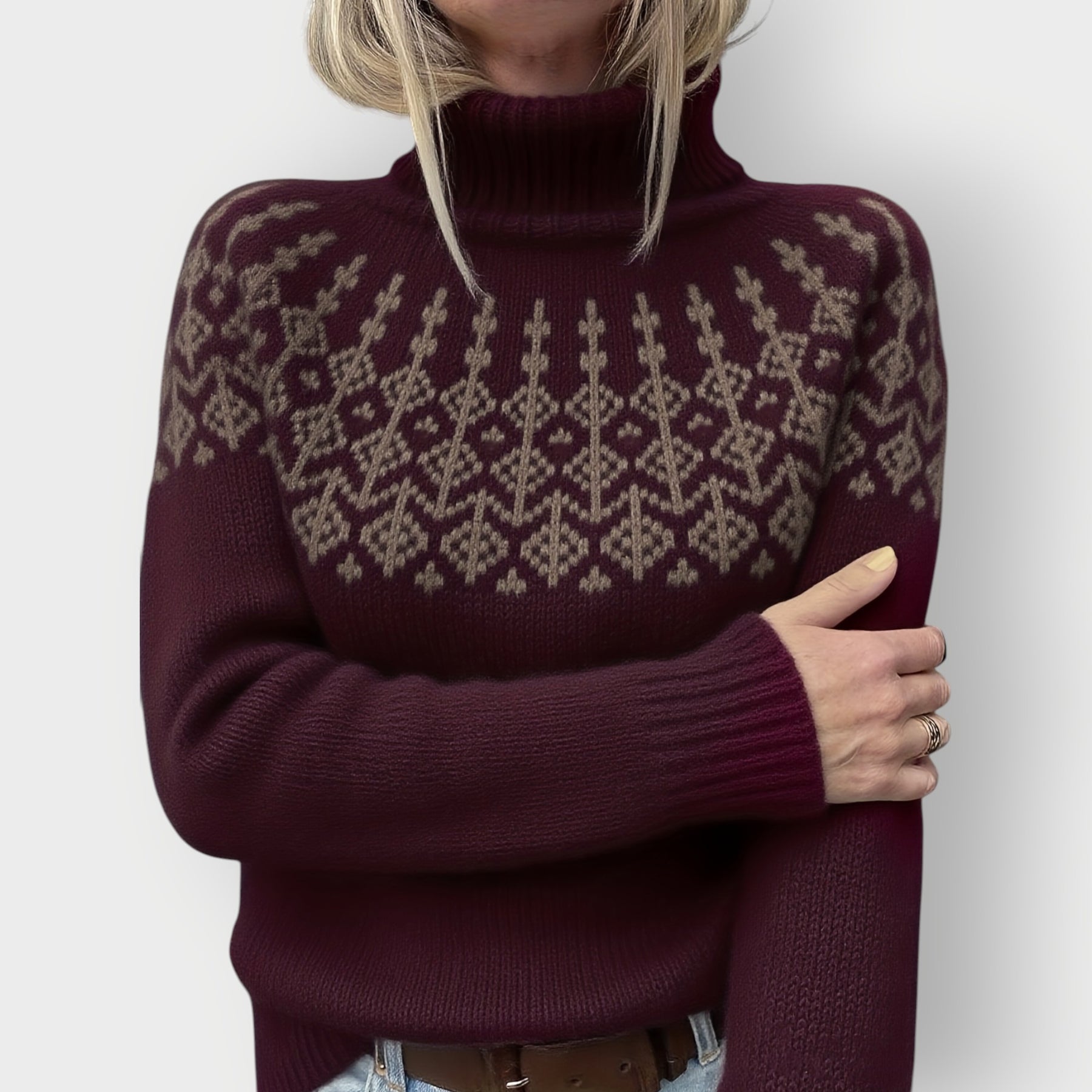 Dakota  - Nordic Pattern Turtleneck Knit Sweater
