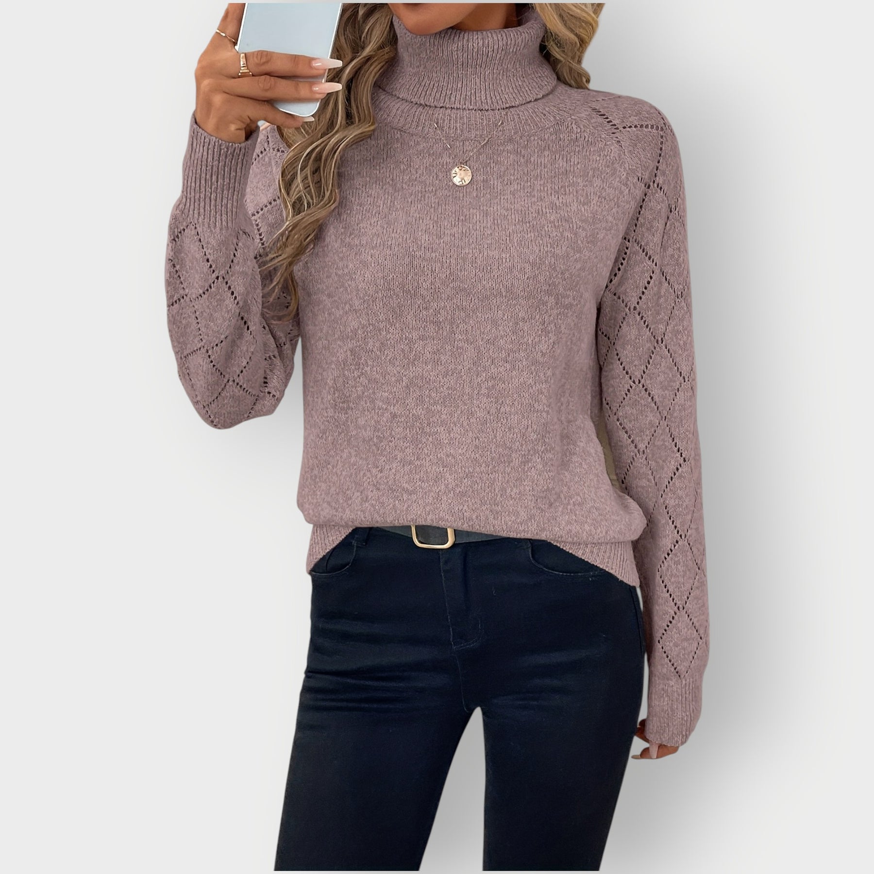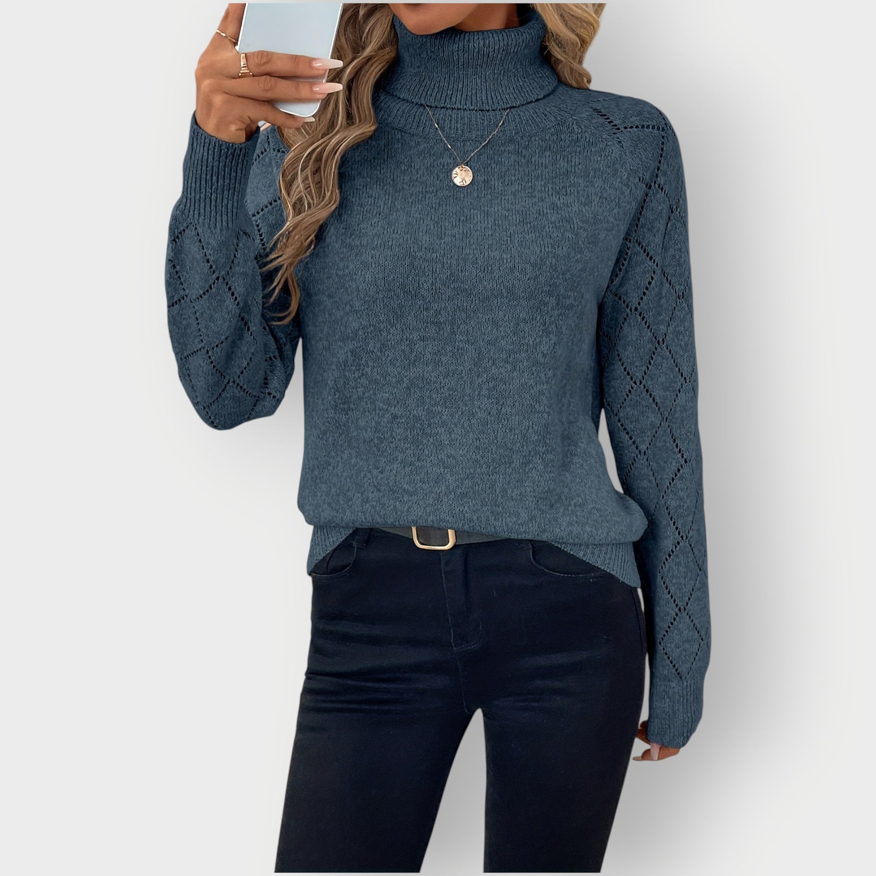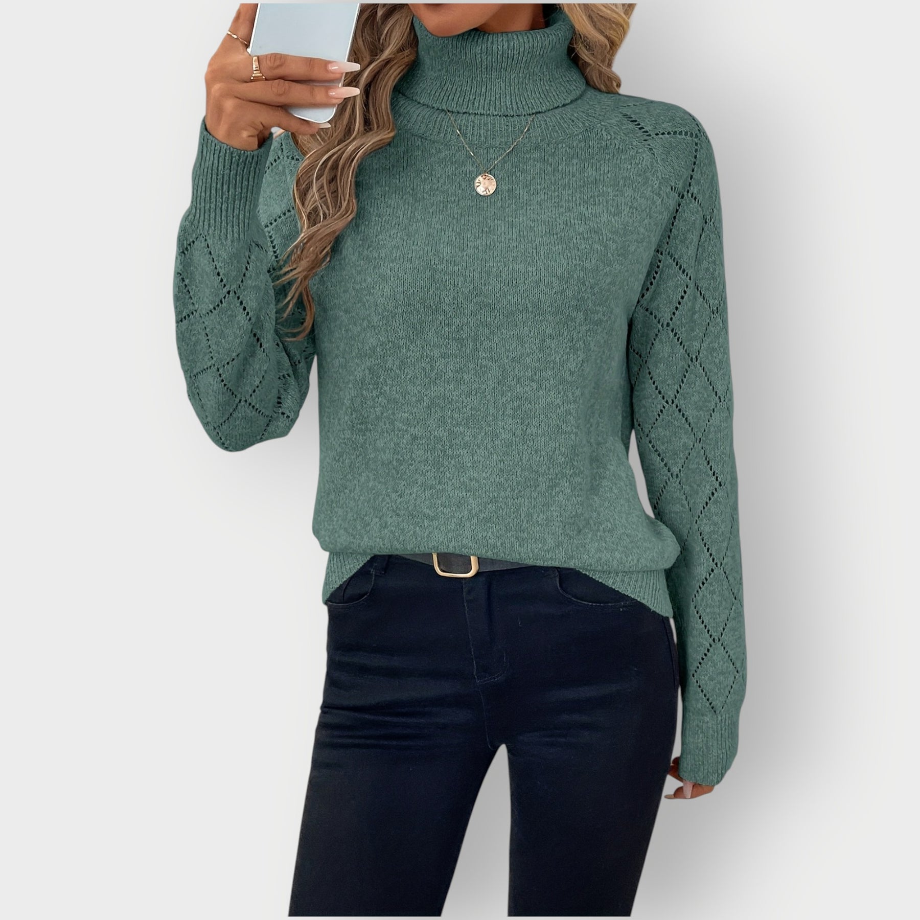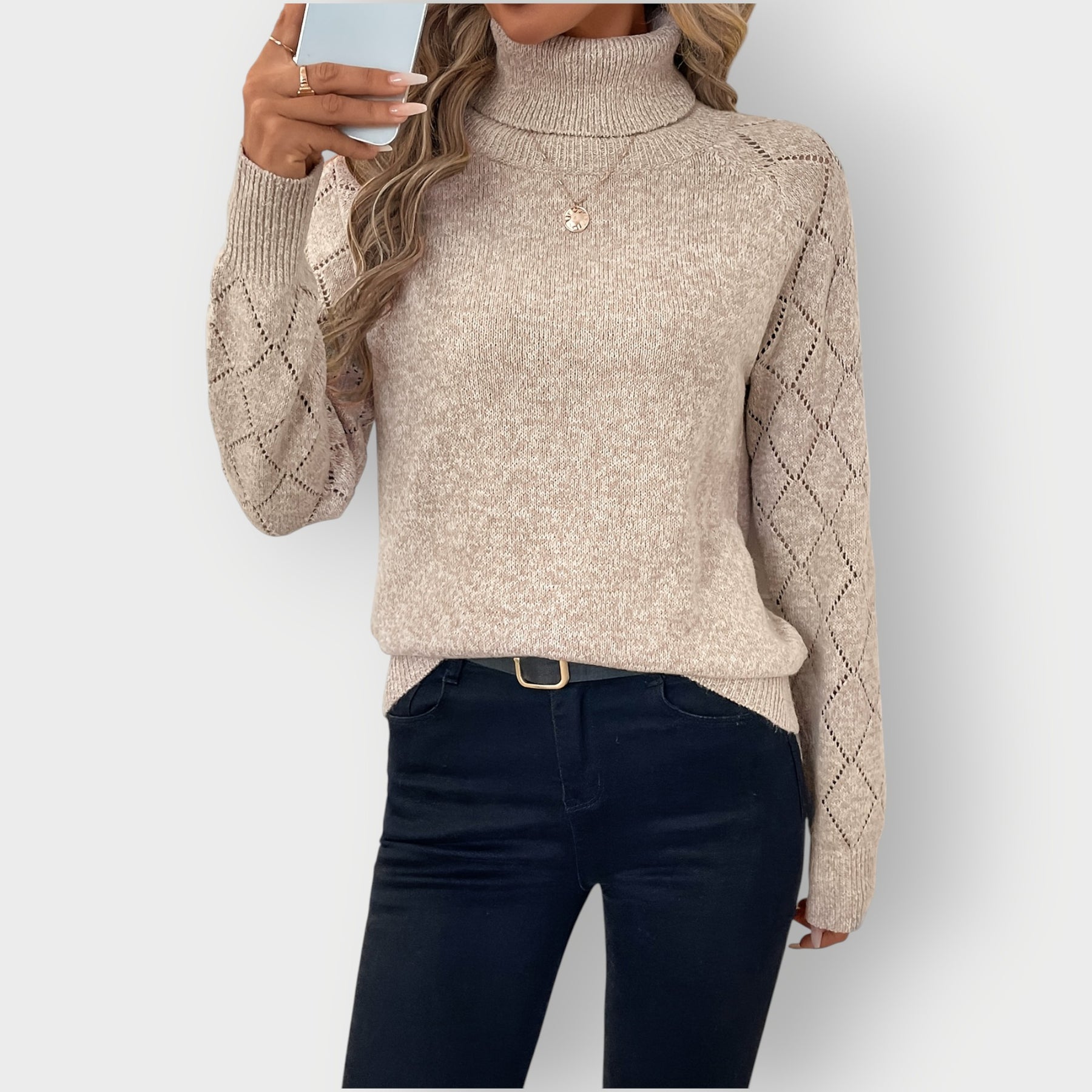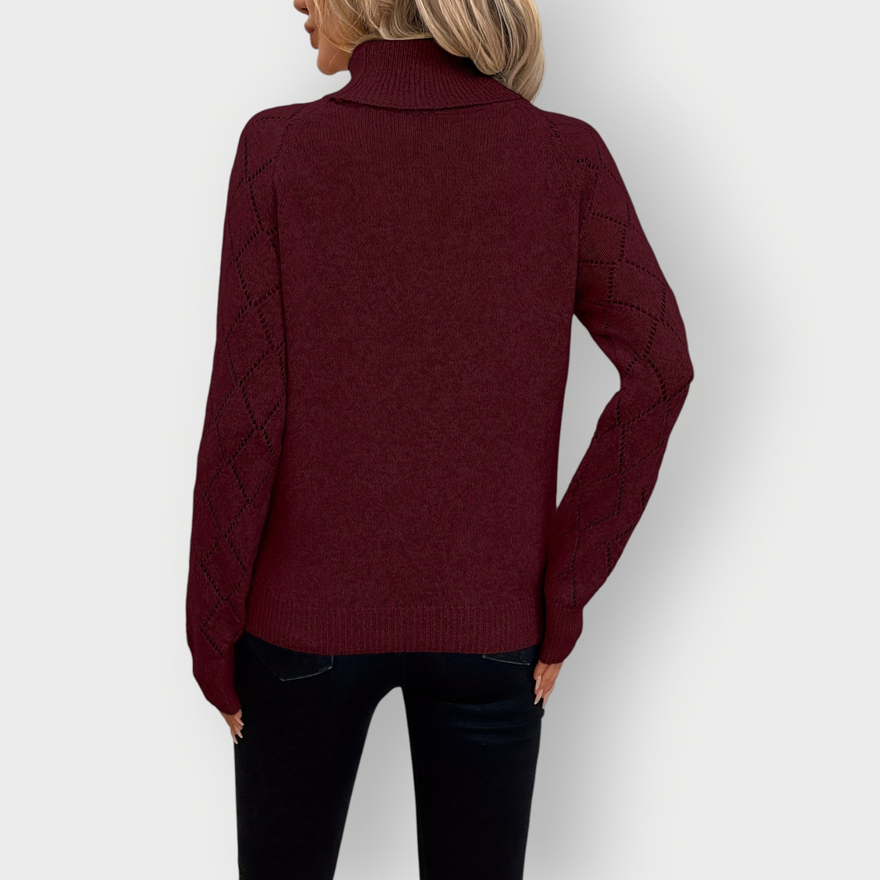 Isla - Classic High-Neck Diamond Sleeve Sweater